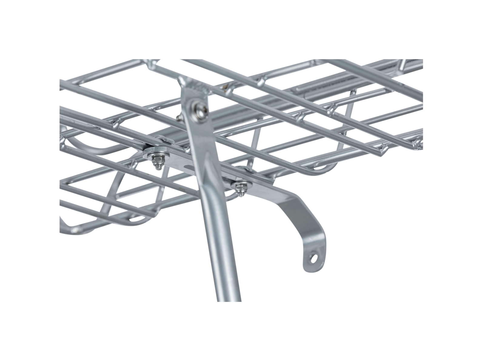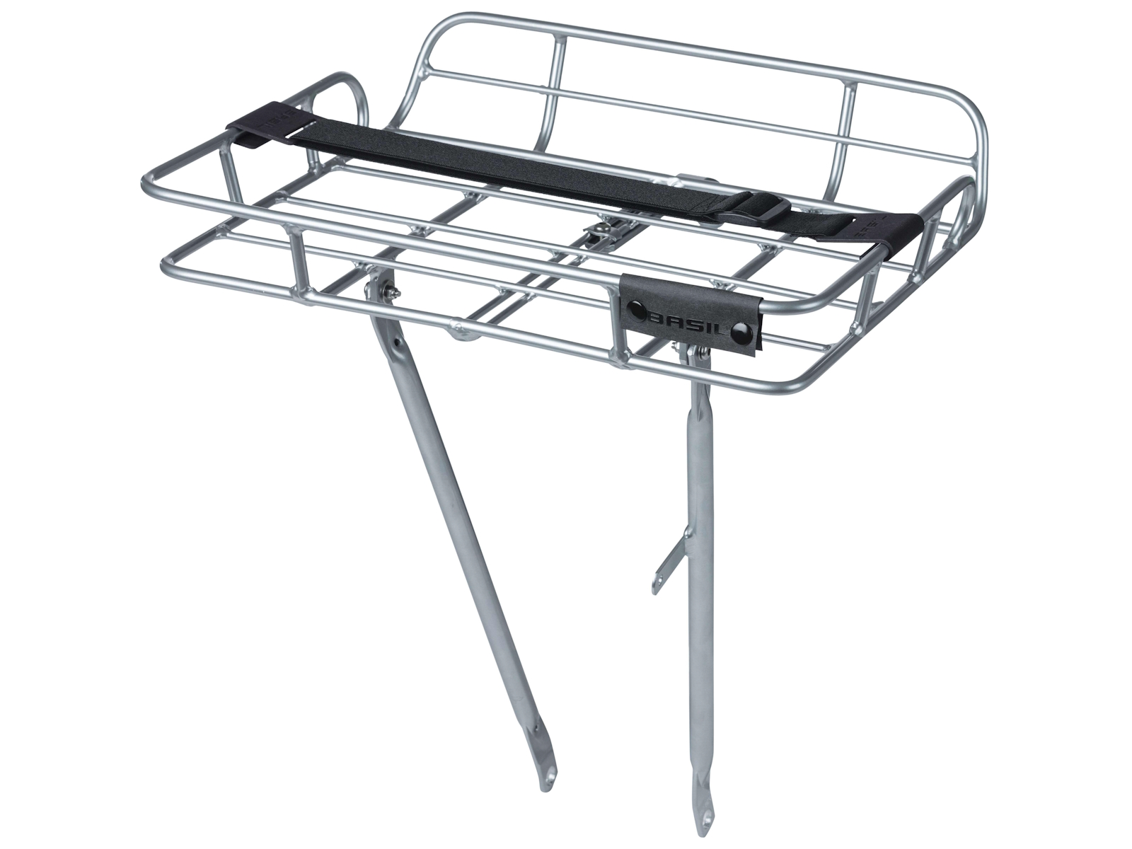 A beautiful aluminum front carrier in a modern vintage style. The lightweight carrier has a raised edge around and a removable buckle band to secure your goods safely. The carrier will fit on 26″ / 28″ bicycles and can hold a max. capacity of 10 kilograms weight. It is mounted onto the fork crown and the legs are mounted onto the front axle (12/13mm Ø axles). The mounting spare parts and instruction manual are enclosed. If you like a retro look, than you will love the Portland range of Basil.