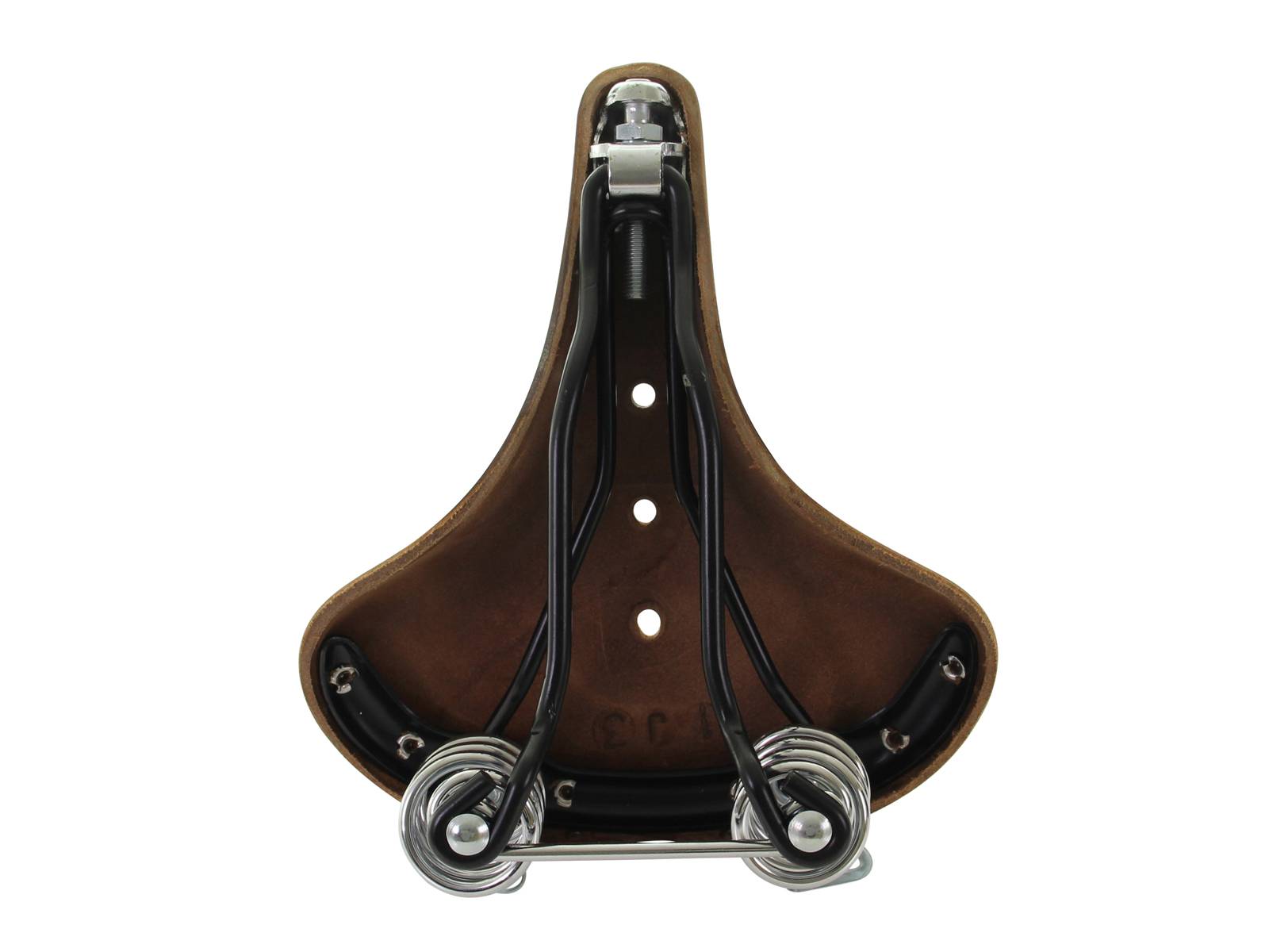 The Brooks B67 S longitudinal suspension saddle type is a classic handmade saddle that provides a great deal of bicycle comfort. The B67 S model is a women’s model. The durable material provides years of comfortable sitting position. The material leather adapts to you and provides support while cycling. Brooks saddles are already known for their good quality. The logo and model number are embossed into the saddle. The bridge is made of elegant black painted steel. Also the saddle on the back is reinforced with a special Brooks bridge. There are two eyes for attaching a saddle bag. The black bridge is equipped with an attachment for a Brooks saddle, so you can attach the seat mount directly to the saddle of the bike. Attention. This style does not come with a seat post. This saddle is mounted directly on the seatpost.