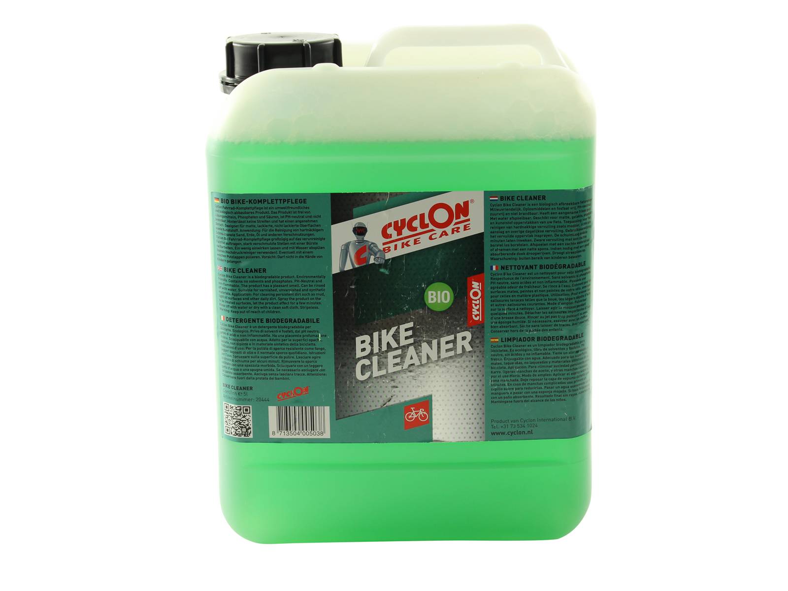 Cyclon Bike Cleaner is a biodegradable product. Environmentally friendly. Contains no solvents and phosphates. PH-Neutral and non-flammable. The product has a pleasant smell. Can be rinsed off with water. Suitable for varnished, unvarnished and synthetic